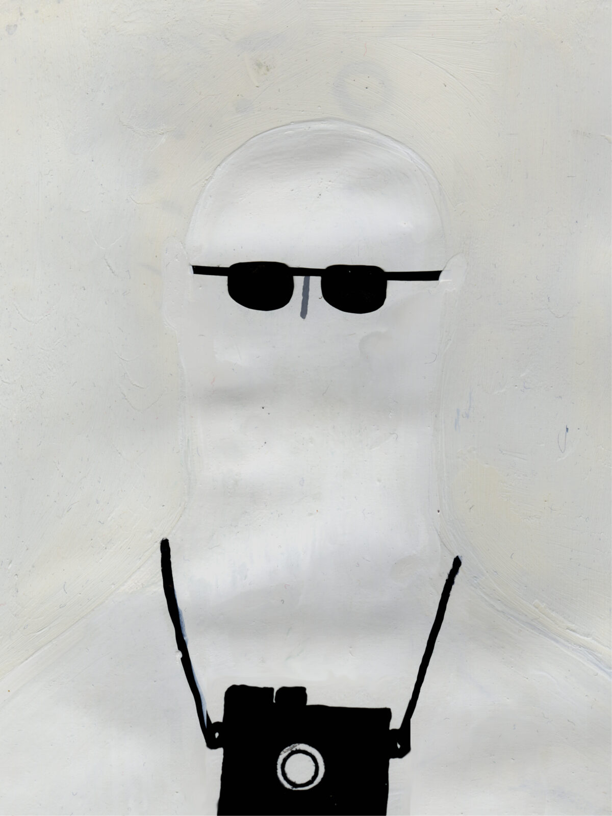 Ein kurzer Blick. Eine Brille. Eine Krawatte. Eine Kamera. Ein Hemd. Eine Sonnenbrille. Ein Ring. Eine Falte. Ein Buckel. Zwei Hände. Ein Lidstrich. Ein Rucksack. Ein Stehkragen. Ein Manschettenknopf.
